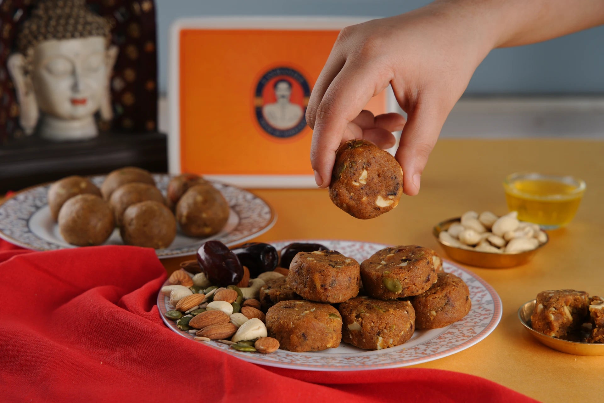 Delight in our specialties: Aata Laddu, Almond Besan Burfee Made in Jaggery, Khajoor Besan Burfee, and Multi Grain Laddu – a perfect blend of taste and tradition!